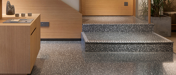 此項目墻面及隔區裝置采用了大量的異形和弧形整體設計,這對水磨石現場施工是一個極高技術難度的考驗,我司通過專業的產品材料方案及合理的施工工藝方案,成功解決此技術難題,項目完成之后室內外空間呈現整體的原始設計質感,匠心品質把控,色調清新淡雅,營造出客戶需求的極致體驗氛圍,并提供專業后期保養維護方案,獲得客戶高度贊譽。